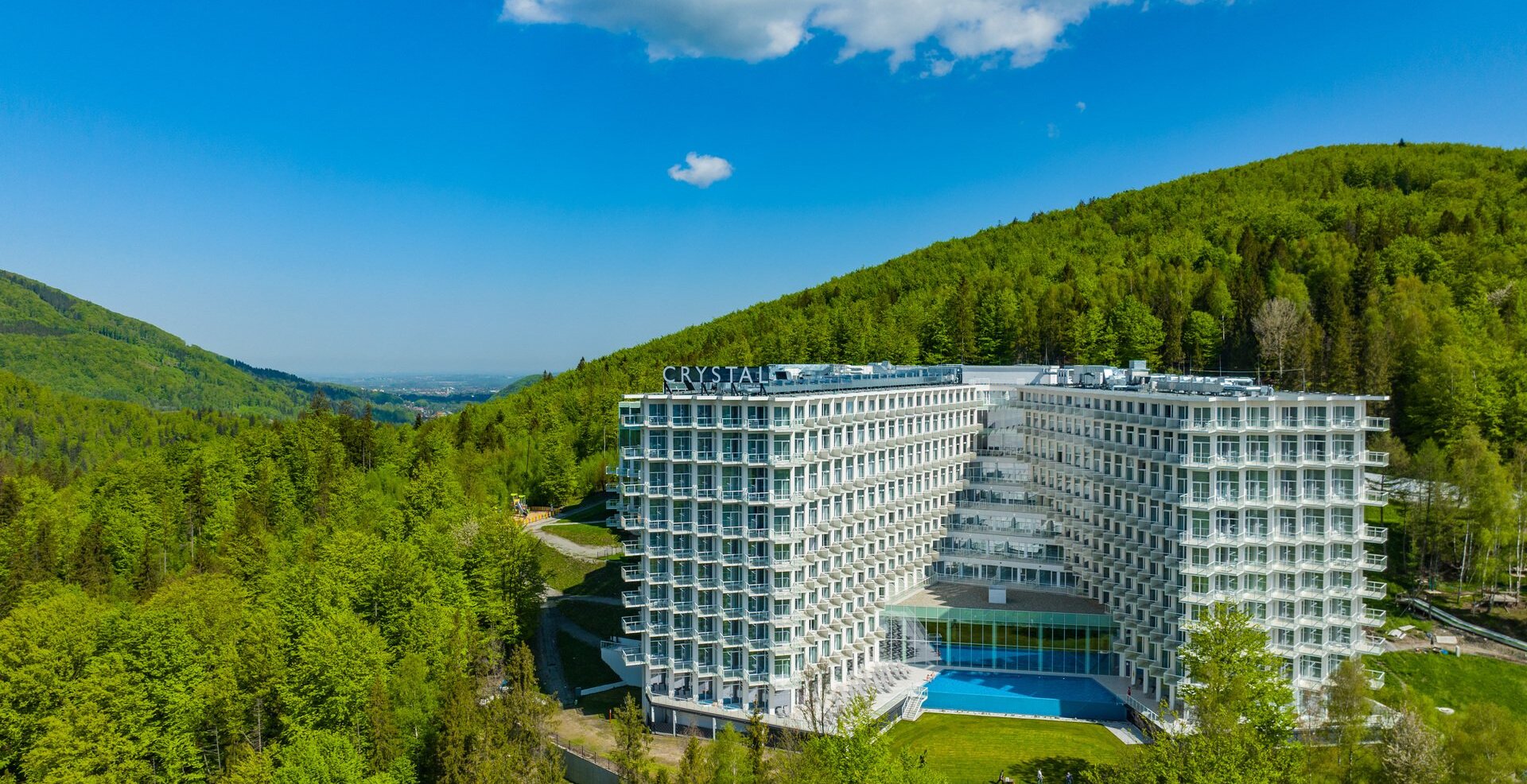 The five-star mountain hotel - Crystal Mountain - is located in Wisła, in an exceptionally picturesque corner of the Silesian Beskids – on the slope of Bukowa Mountain. The location of the property guarantees amazing views of the mountain panorama and the Wisła valley. In the beautiful surroundings of mountain nature and elegant interiors, Guests can spend an unforgettable stay with family, a romantic weekend for two, or a successful business meeting. Crystal Mountain is a hotel for families, a hotel with attractions for children and adults, as well as a hotel with a water park where every Guest will find a place to relax suited to their needs. Hotel packages have been prepared especially for those Guests who love spring: